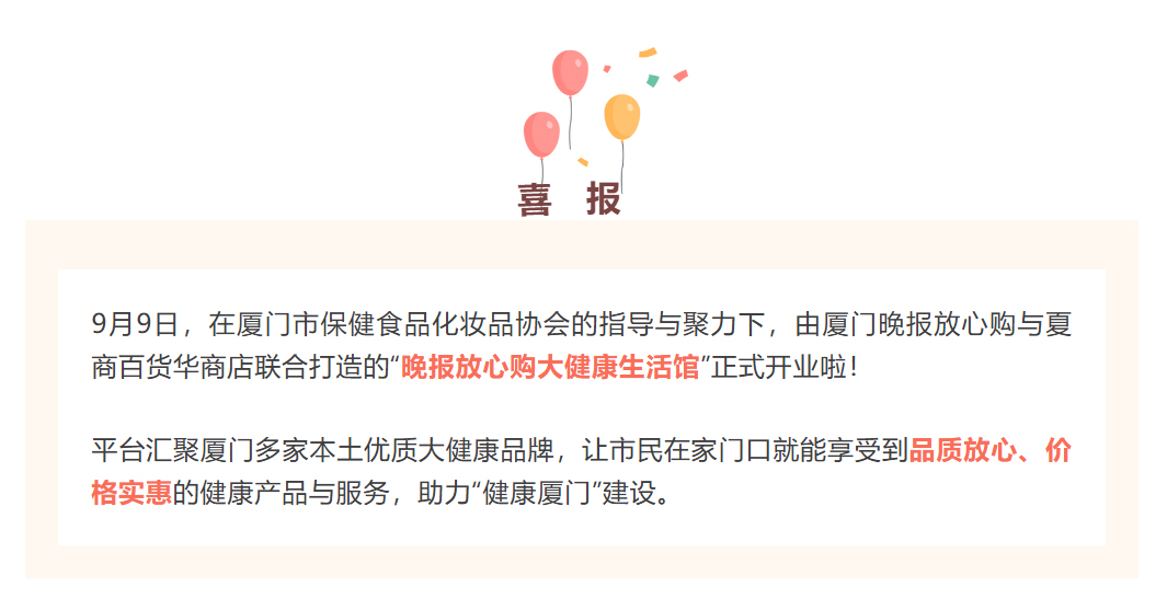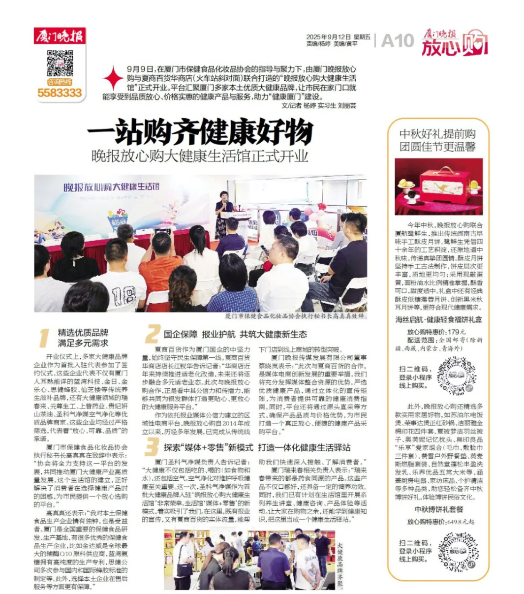 廈門(mén)晚報(bào)放心購(gòu)大健康生活館正式開(kāi)業(yè)啦!思健蜂膠等系列大健康保健食品受邀入駐