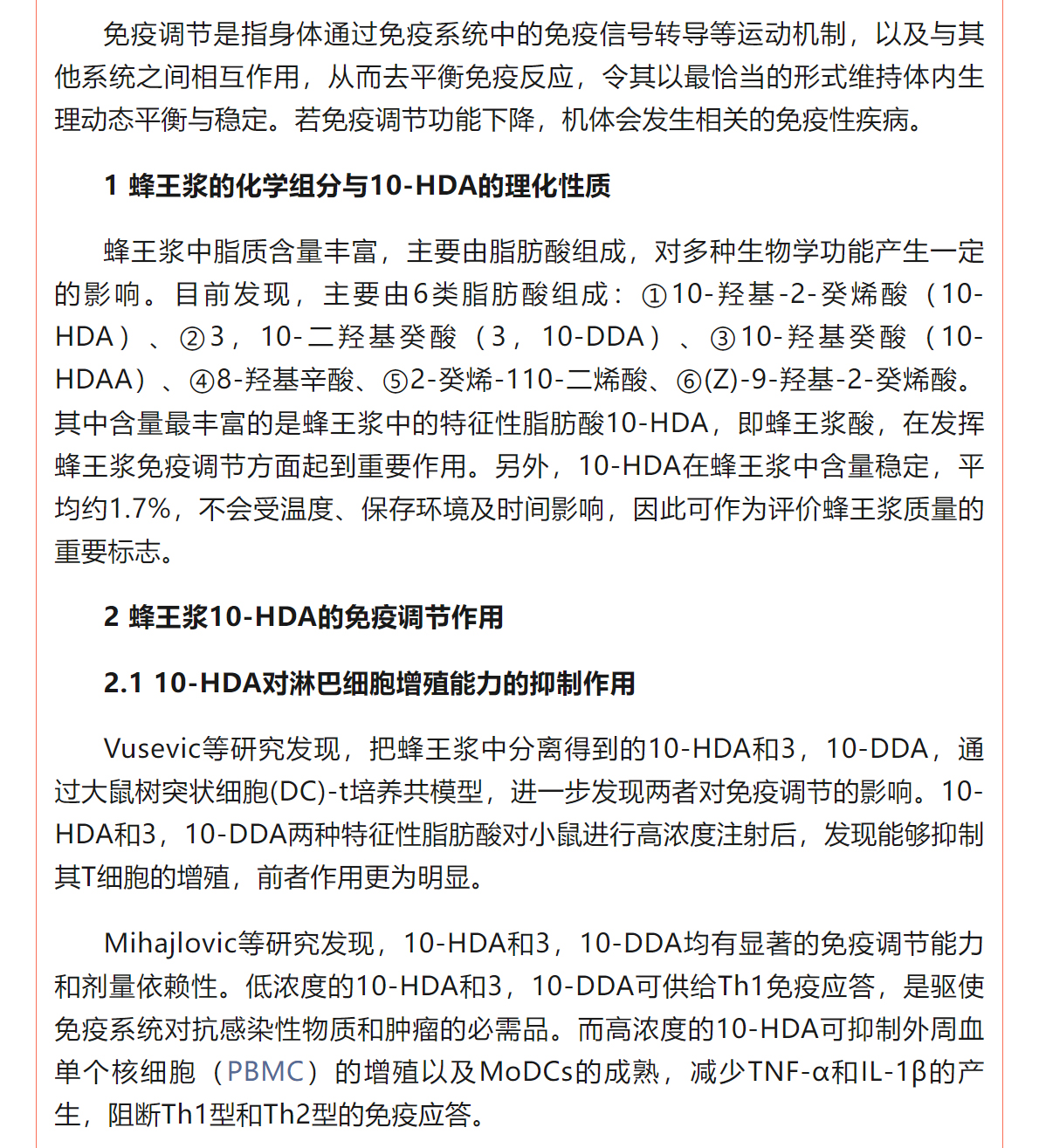 蜂王漿中10-HDA的免疫調(diào)節(jié)作用研究進(jìn)展