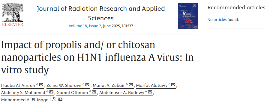 本研究?jī)?nèi)容基于發(fā)表于《Journal of Radiation Research and Applied Sciences》的論文(Impact of propolis and/ or chitosan nanoparticles on H1N1 influenza A virus: In vitro study,DOI:10.1016/j.jrras.2025.101537),由沙特阿拉伯與埃及多所大學(xué)聯(lián)合完成。