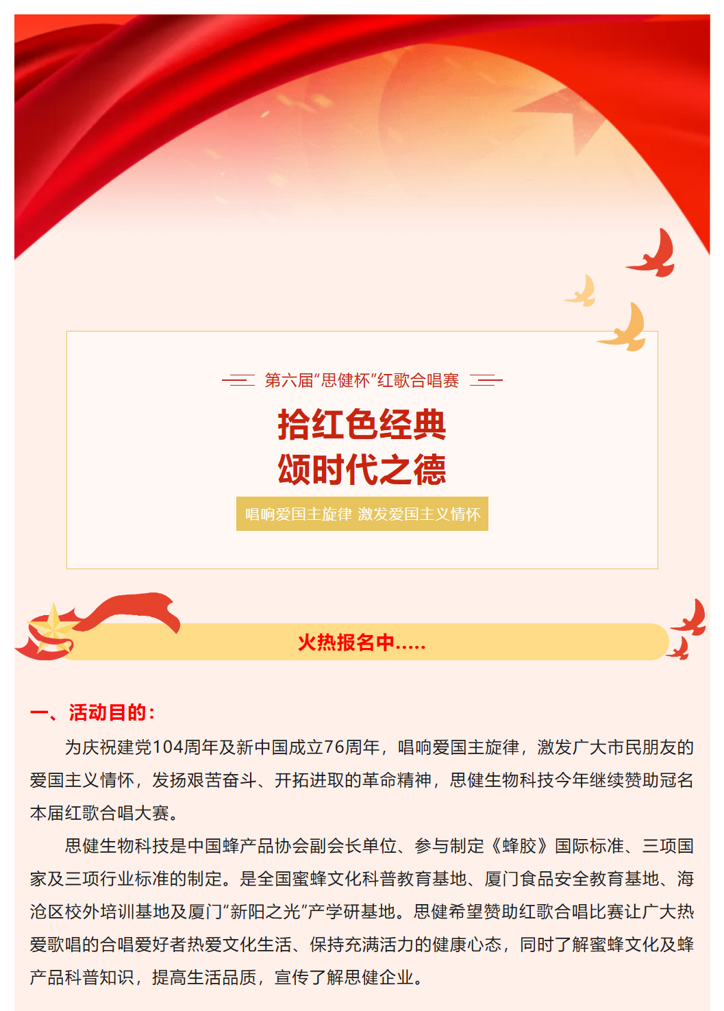 唱響紅色旋律 |第六屆“思健杯”紅歌合唱賽報(bào)名開始啦…